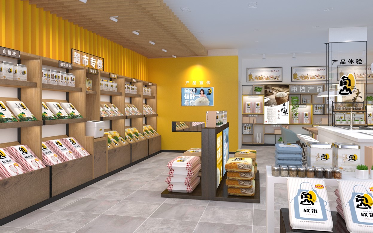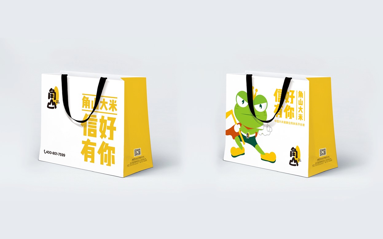 角山大米的視覺方面采用黃色,品牌調性摒棄傳統大米品牌的風格,針對更加的年輕和簡約,符合當代新消費的審美,打造全新品牌視覺體系,傳遞可信賴的大米品牌新形象。