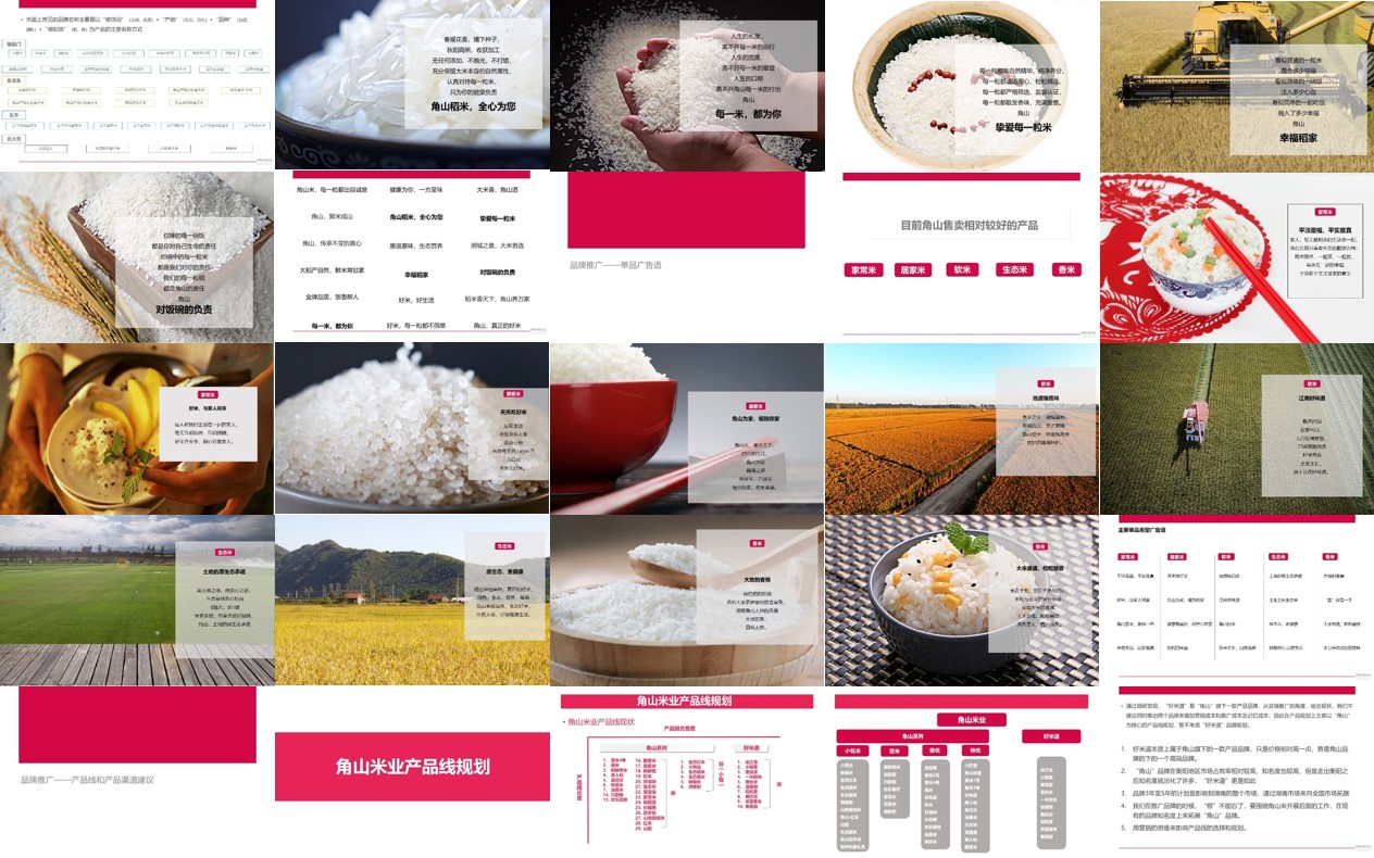 湖南角山米業有限責任公司創建于1992年,集糧食育種、種植、加工、銷售、研發于一體,但當時湖南大米檢測初鎘含量超標,導致全國各地對湖南大米信任度低,避而遠之,市場大環境非常不好,即使角山米業的產品品質高,以其當下的品牌建設和市場溝通方式,產品線冗長,缺少標準的視覺形象規范,贏得市場,銷量增長幾乎是不可能的事情。
